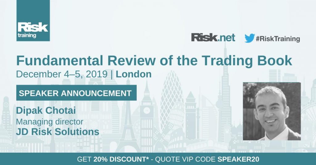 Dipak Chotai was a speaker at the Risk.Net FRTB training session in London, discussing the importance of desk structure to representatives from banks and vendors