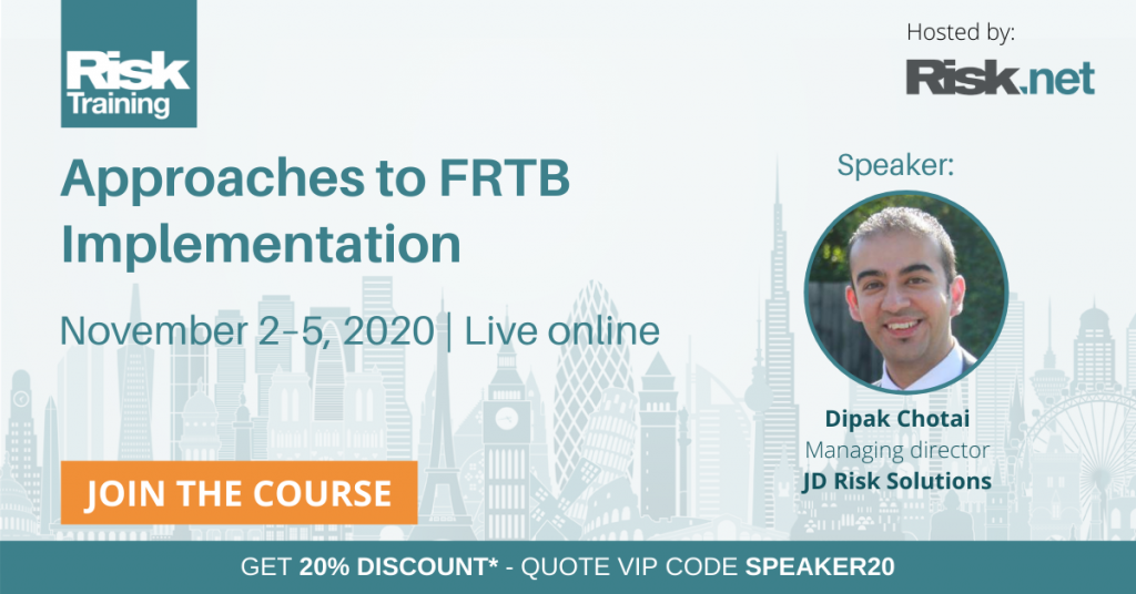 Risk Training: Approaches to FRTB Implementation. Online – November 2-5, 2020Register now to join Dipak Chotai as he discusses the importance of desk structure.